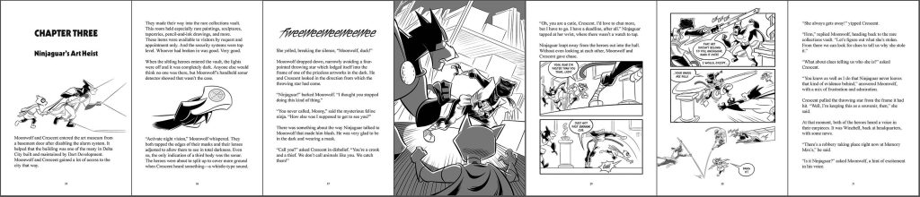 comics (see sample chapter below) to deliver action packed superhero adventure stories with